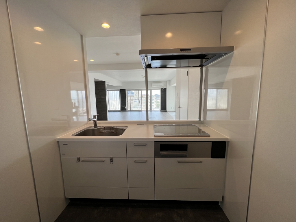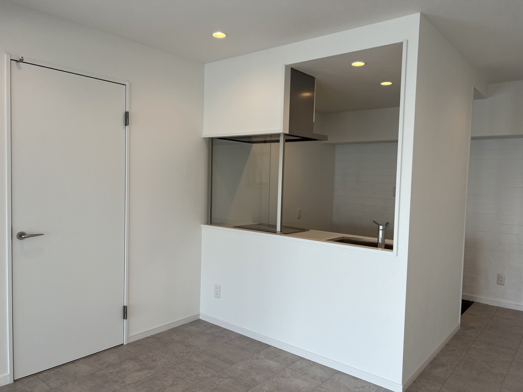 別荘用マンションなので、キッチンは小さめですが、間仕切り壁を作り生活感を隠しながらも、コンロ前はガラスにする事で明るいキッチンに仕上がりました✨他の部位についてもまたご紹介させて頂きますので、お楽しみに!