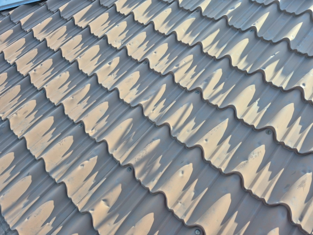 雹により、凹んでしまった金属屋根をふき替える工事を行わせて頂きました。使用したのは、セキノ興産のファイン瓦という屋根材です。お色はブラックになります。