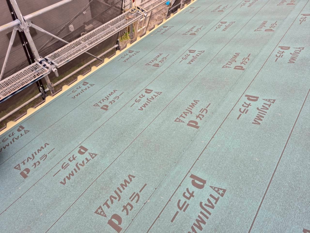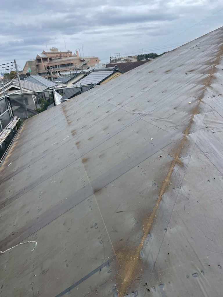 屋根材を剥がし、新しい防水シート(ルーフィング)を施工します。