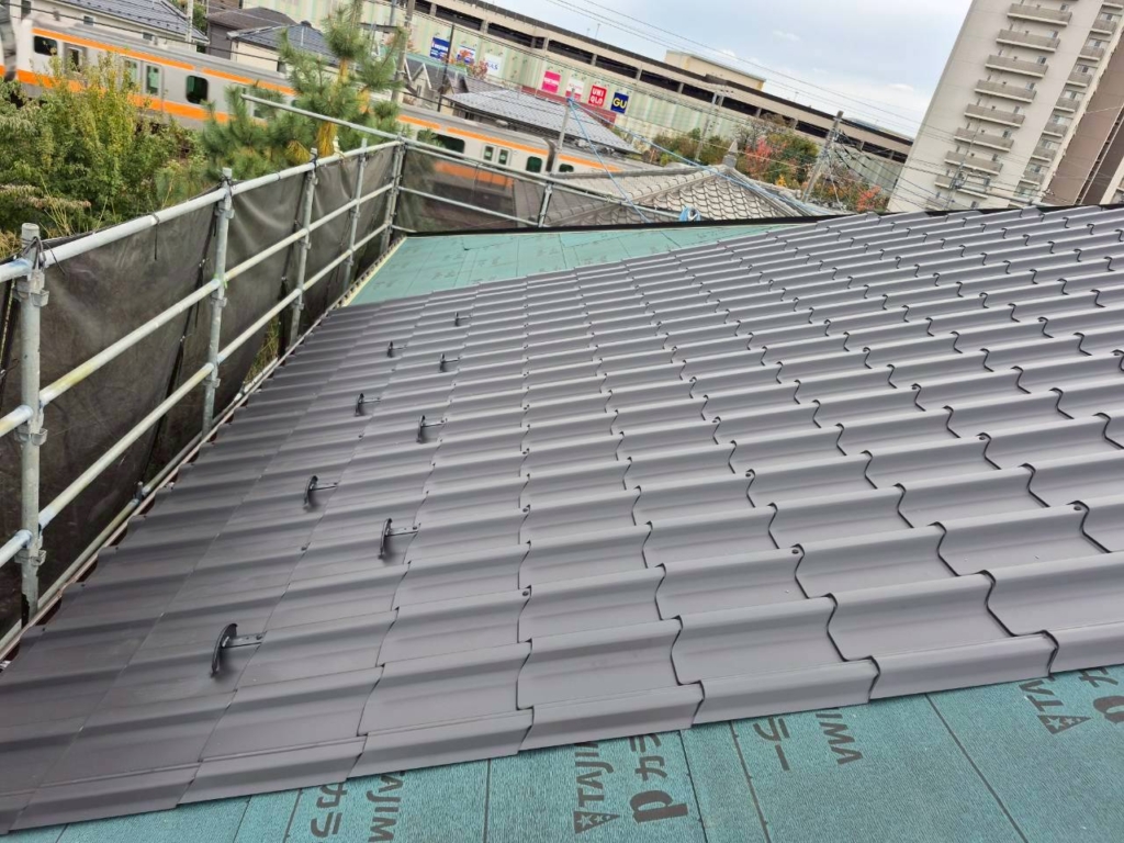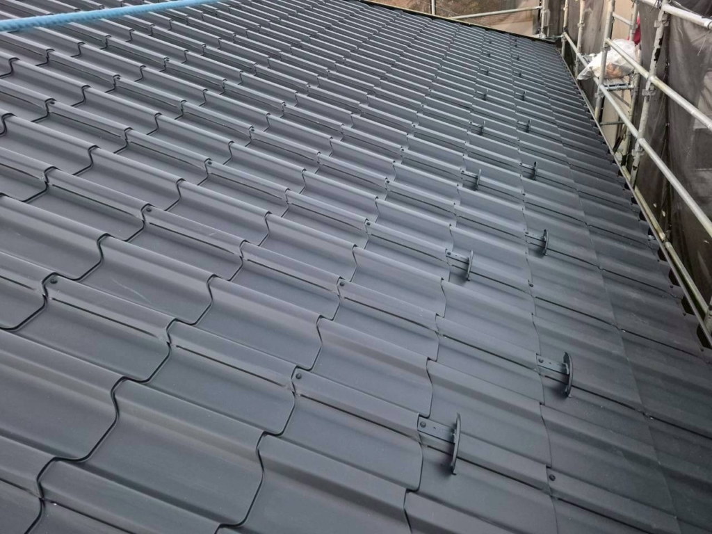 縦一列に繋がっている屋根材なので、施工し始めるとあっという間に仕上がります!