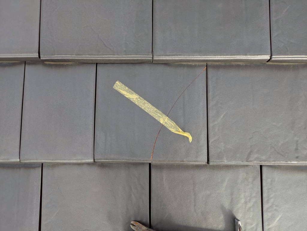 屋根の陶器瓦が割れてしまった為、交換工事を行わせて頂きました。こちらの瓦は、鶴弥のFM306という瓦で、10年以上前に廃番になってしまっています。廃番になると、メーカーの在庫が無くなったら同じ物は手に入らないのですが、今回は奇跡的に在庫があり、同じ商品で交換する事が出来ました✨