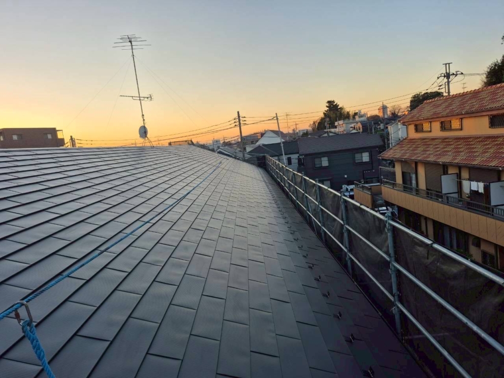 屋根のカバー工法を行わせて頂きました!今回使用したのは、ガルバリウム鋼板製の「GOKUルーフ」という商品です。