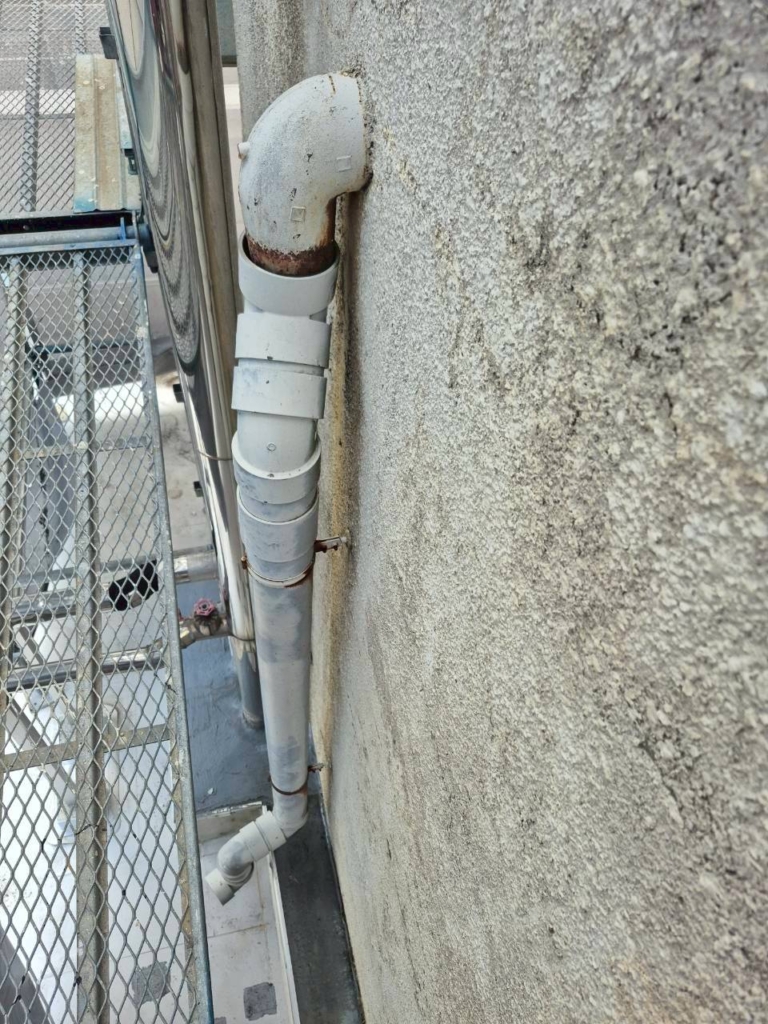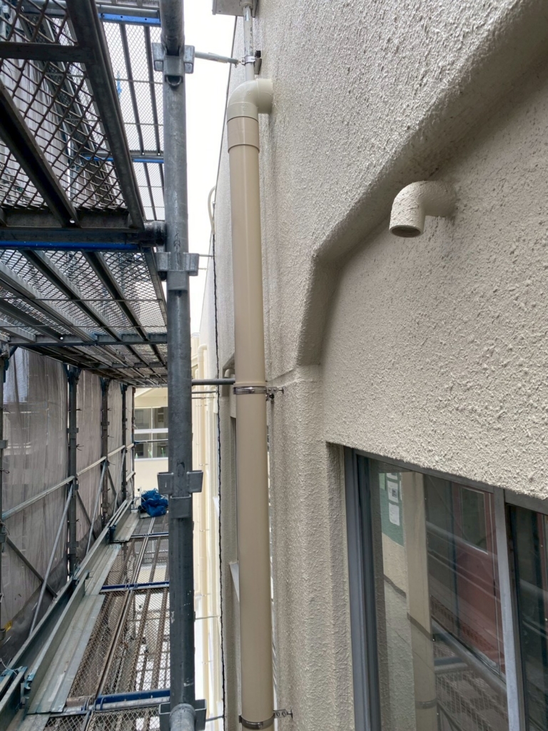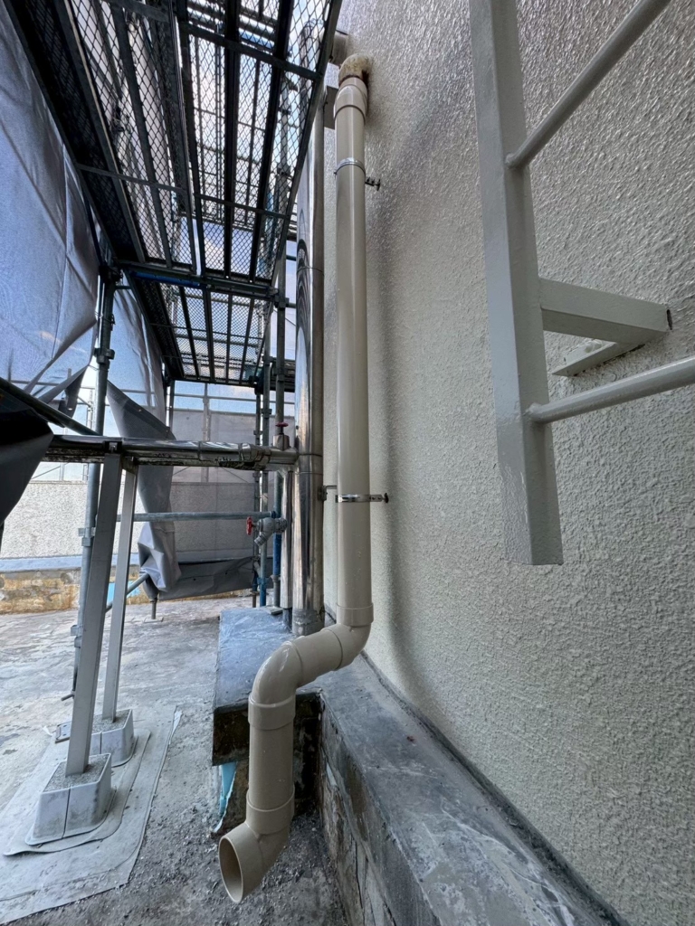 竪樋の交換工事を行わせて頂きました。施設なので、住宅用の雨樋とは違い、丈夫なVP管という物を使用しております。写真だとあまり大きく見えませんが、実際に見ると太くて重くて驚きます😲大型施設が得意な作業スタッフもおりますのでぜひお気軽にお問い合わせください!