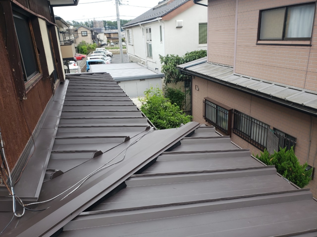 屋根リフォーム事例のご紹介です!昔ながらのお家でよく見かける瓦棒の屋根、瓦と名前がついていますが、金属板葺きの屋根です。